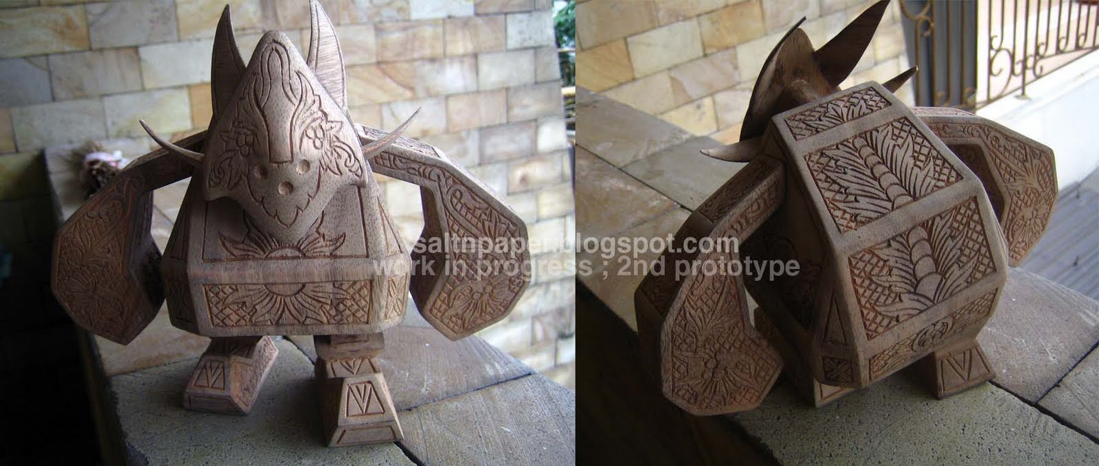 BANZAI! I received the 2nd Solidboy protoype! The dimension and proportions of the parts are all the same. Amendment is made for the carving, especially to the carving depth, facial and spine pattern. We also decided to slightly enlarge the 'diamond' scale texture to increase the shape consistency, resulting a very accurate repetition. I purposely took this picture with natural lighting so you can really observe the texture, no photography trick is used here.. what you see is what I see..